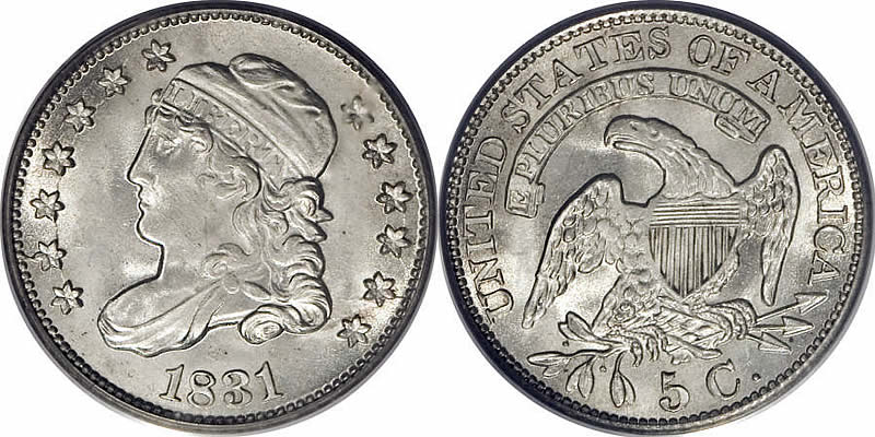 These were not entirely new designs: Portraits very much like them had graced some of the nation's larger silver coins (the half dollar, quarter and dime) since as far back as 1807, when the basic designs were fashioned by German-born Mint engraver John Reich. They were new to the half dime, though and in any case William Kneass, the Mint's chief engraver in 1829, had modified Reich's portraits sufficiently to be credited as designer of the later Capped Bust issues.