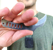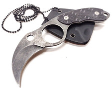 Small Karambit Neck Knife Concealed Carry Full Tang Fixed Blade Kydex Stonewash