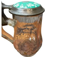 Vintage German Beer Stein Glass Pewter lid -cracked