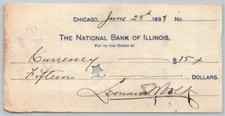 LEONARD VOLK Signed AUTOGRAPH on 1800's Bank Check / ABRAHAM LINCOLN Sculptor