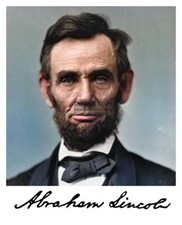 PRESIDENT ABRAHAM LINCOLN COLORIZED PORTRAIT AUTOGRAPHED 8X10 PHOTO
