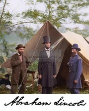 PRESIDENT ABRAHAM LINCOLN AT ANTIETAM COLORIZED AUTOGRAPHED 8X10 PHOTO