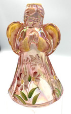 FENTON Art Glass Praying Angel Pink Iridescent Hand Painted Signed M Caplinger