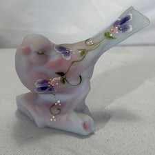 Fenton Violets in the Snow Milk Glass Bird Handpainted signed by Paula Palmer