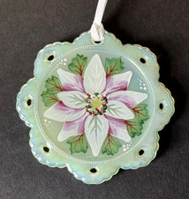 Fenton For QVC Sea Green Irridized Christmas Ornament 1998 Hand Painted Flower