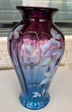 Fenton Vase For Teleflora Ruffled Top Glass Hand Painted Flowers Art Glass Vase