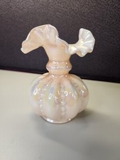 Fenton Melon Vase Iridescent Pink Beaded Ruffle Edge Signed Dan Fenton & Sticker