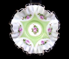 Fenton Glass Charleton Roses Green Mist & Roses Silver Crest 6" Bon Bon 1948-