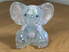 Fenton Hand Painted Roses Elephant Art Glass Figurine Signed S Fenton- FAST SHIP