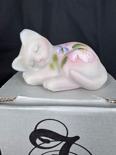 Fenton Lotus Mist Burmese Signed Sleeping Cat Kitten Limited Edition w/ Ear Chip