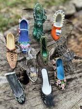 Fenton Art Glass Victorian Hand Painted Floral Design Slipper + Willow Hall Shoe