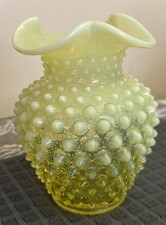 5" Fenton Topaz Yellow Opalescent Uranium Vaseline Hobnail Vase