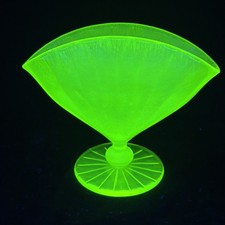 Fenton Stretch Vaseline Fan Vase Art Deco Glass UV Glows Topaz Opalescent