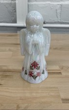 Fenton Art Glass Poinsettia White Opalescent Girl Angel 5.5" Hand Painted