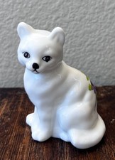 Fenton Art Glass White Milk Glass Floral Sitting Cat Hand Painted Kitten Signed
