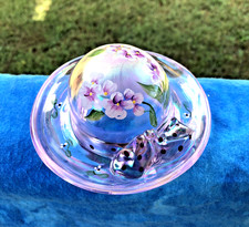 NEW Rare Fenton Pink Glass Ladybug Hat | Hand Painted Floral Decor 100th Anniver
