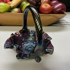 Fenton Art Glass Carnival Medallion Basket 3 Footed 7” h