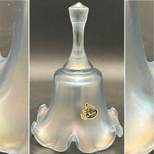 Fenton Art Glass Satin Blue Iridescent Dinner Bell c1970s Made in USA 6.5" tall