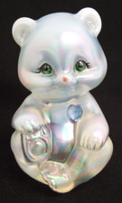 Vintage Fenton Art Glass Birthday Bear Opal Mist Signed A. Van Zile Blue March