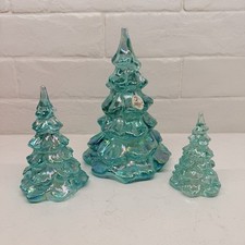 Vintage Fenton Art Glass Iridescent Aqua Teal Christmas Tree Lot Set 6”, 4”, 3”