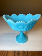 Blue Satin Fenton Art Glass Hobstar Pinwheel Compote 1970’s