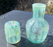 Fenton Art Glass Opalescent Aqua Green Striped Night Water Tumble Up W/ Lilacs