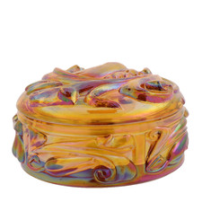 Factory Second Fenton Art Glass Autumn Gold Carnival 4" Round Trinket Box