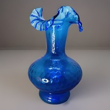 Fenton Art Glass Blue Opalescent Ruffled Lilly of the Valley Handkerchief Vase