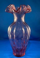Fenton Art Glass Pink Scalloped Edge Vase 8"