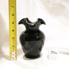 Black Fenton Art Glass Vase with Ruffle Edge .