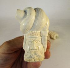 Vintage 14” MEERSCHAUM HAND CARVED TURKISH PIPE Ottoman SULTAN TURBAN case stnd
