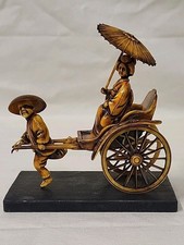 Vintage Oriental Asian Rickshaw Figurine Planter Gold Trim