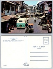 Vintage Singapore China-Town Street Scene Postcard A.S.M.K. & Co. Rickshaw