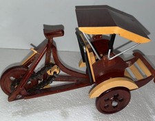 Miniature Wooden Pedal Rickshaw- Asian Taxi- 3 Wheels - Chain Drive- Carriage