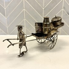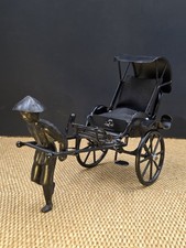 Rickshaw Sculpture 8” Small Vintage Handmade Cart Man Coated Metal