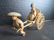 Vintage Japanese Man Pulling Woman In Rickshaw / Handcart Figurine