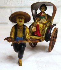Vintage Celluoid Man Pulling a Rickshaw with a Geisha Figurine