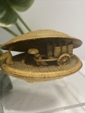 Vintage Celluloid Japanese Netsuke Clam Shell Rickshaw Dragon Diorama Scene
