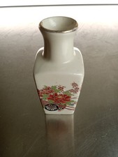 VTG Miniature Japanese Hand Painted Square Porcelain Vase - Gold Accents- 3.75"T