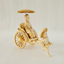 Vintage Japanese Celluloid Figurine Geisha in a Rickshaw pulled by man