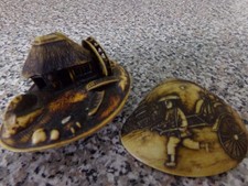 VINTAGE JAPANESE DIORAMAS CLAM SHELL W/ RICKSHAW