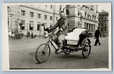1948 Man Cycle Rickshaw Bicycle Customs House Shanghai China RPPC Photo Postcard