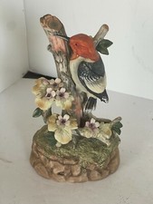 Vintage Music Box Bird Woodpecker Flower Ceramic