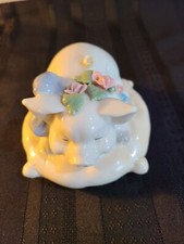 Vintage Enesco Wind Up Rabbit Music Box 1988 Working "Whistle While U Work"