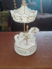 Awesome Vintage 1 Horse Music Box Porcelain Carousel Merry Go Round (U29)