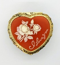 Vtg Sankyo Heart Shaped Music Box Footed Hinged Gold tone I Love U Romantic Work