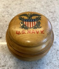 U.S. Navy Wooden Musical Box Candy Dish Holder Vtg Antique Military Eagle *Read*