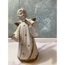 Vintage Schmid Angel Music Box Figurine Japan Bisque Porcelain Gold Stars White
