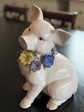 Vintage San Francisco Music Box Pink Pig w Flowers Canta Rosa