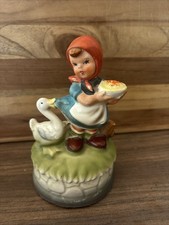 Girl & Duck Music Box Should Play Love Story Does Not Porcelain Japan Vintage